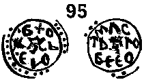95. Вариант 3. Л. с. Трехстрочная надпись и изображение, как и в варианте 1, но другого штемпеля.