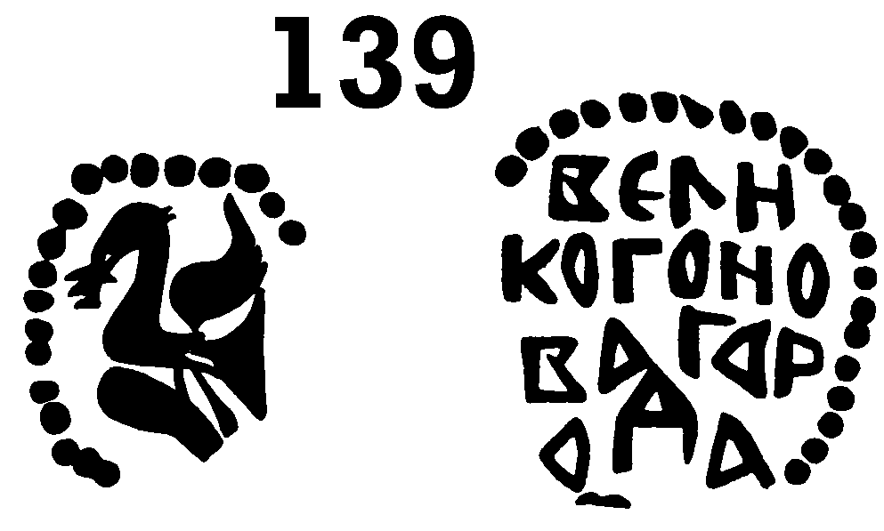 О. с. Четырехстрочная надпись: ВЕЛИ||КОГОНО||ВАГОР||ОДА; вокруг точечный ободок.